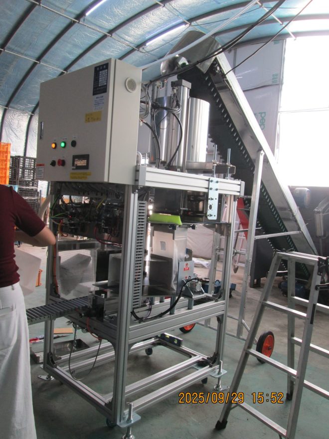 2025.10.11 実績 NFT-1A納品(≧▽≦) 久しぶりの投稿&袋詰め機の納品報告でございます(>_<) 今回ご購入していただいたお客様は千葉県山武市にある小岩株式会社様です。 ハウス栽培しているお客様でずらりとハウスが立っていました(≧▽≦) 初めてのミキサーとベルコンでの制御で不安もありましたが無事に設置試運転できました。 また更新あればUPしていきまーす。 以上詰め機担当でした(‘◇’)ゞ
